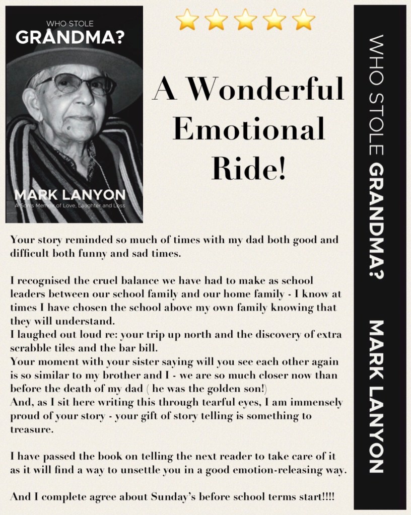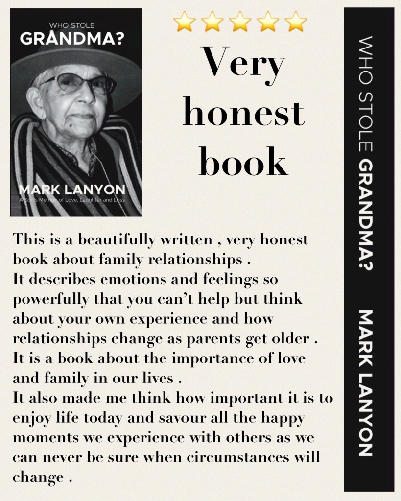 Honest, deeply personal and thought-provoking, Who Stole Grandma? is written not as a handbook on End of Life, but as a life affirming call on each of us to relish the time that remains.